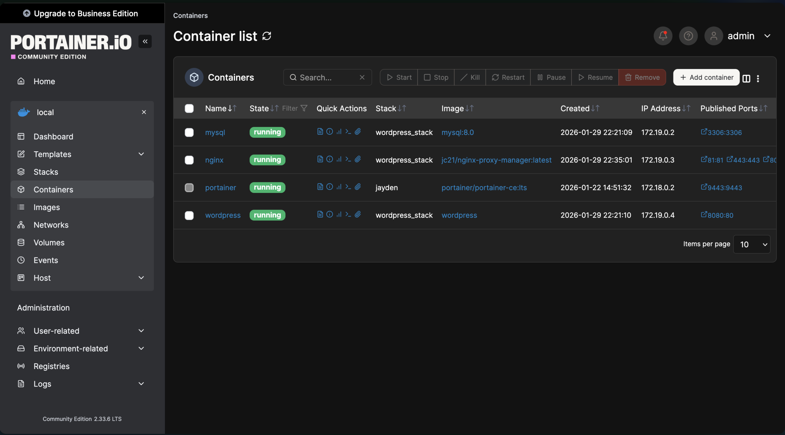 Voor mijn persoonlijke portfolio wilde ik volledige controle over de gehele stack. De website wordt volledig zelf gehost op een Raspberry Pi, waarbij ik gebruikmaak van Docker en Docker Compose voor een modulaire opbouw. Om het verkeer veilig en efficiënt te routeren, heb ik een Nginx Reverse Proxy geconfigureerd, met Portainer als centraal dashboard voor containerbeheer. De site is gebouwd met het Salient-framework, waarbij ik bewust geen gebruik heb gemaakt van templates om een uniek, op maat gemaakt design te realiseren.